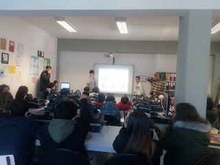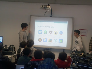 Ontem, os alunos dos cursos profissionais de informática, 10º, 11º e 12º GPSI, orientados pelos sua professora Olga Rodrigues, dinamizaram no espaço da biblioteca da escola 2/3 El Rei D. Manuel I, sete sessões com turmas do quinto e do sexto anos, envolvendo 173 alunos.