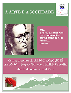 No auditório da escola secundária de Alcochete, as turmas 12ºA, 12ºG e 11º D assistiram a uma sessão de divulgação da obra de José Afonso, cantor poeta de intervenção que lutou com a sua arte contra a ditadura de Salazar, antes do 25 de Abril e que está para sempre associado a esta data maior da nossa história, por ser o autor da canção Grândola Vila Morena.